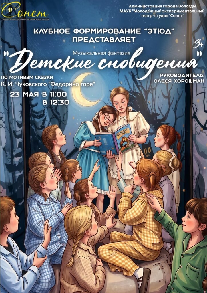 Театр-студия «Сонет» и клубное формирование «Этюд» (руководитель О.В. Хорошман) приглашают вас на музыкальную фантазию «Детские сновидения», вдохновленную сказкой Корнея Ивановича Чуковского «Федорино горе».